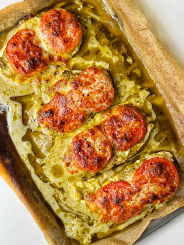 Quick Cheesy Baked Pesto Chicken